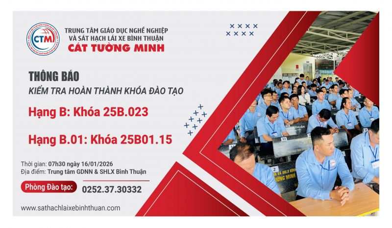 THÔNG BÁO KIỂM TRA HOÀN THÀNH KHÓA ĐÀO TẠO NGÀY 16-01-2025